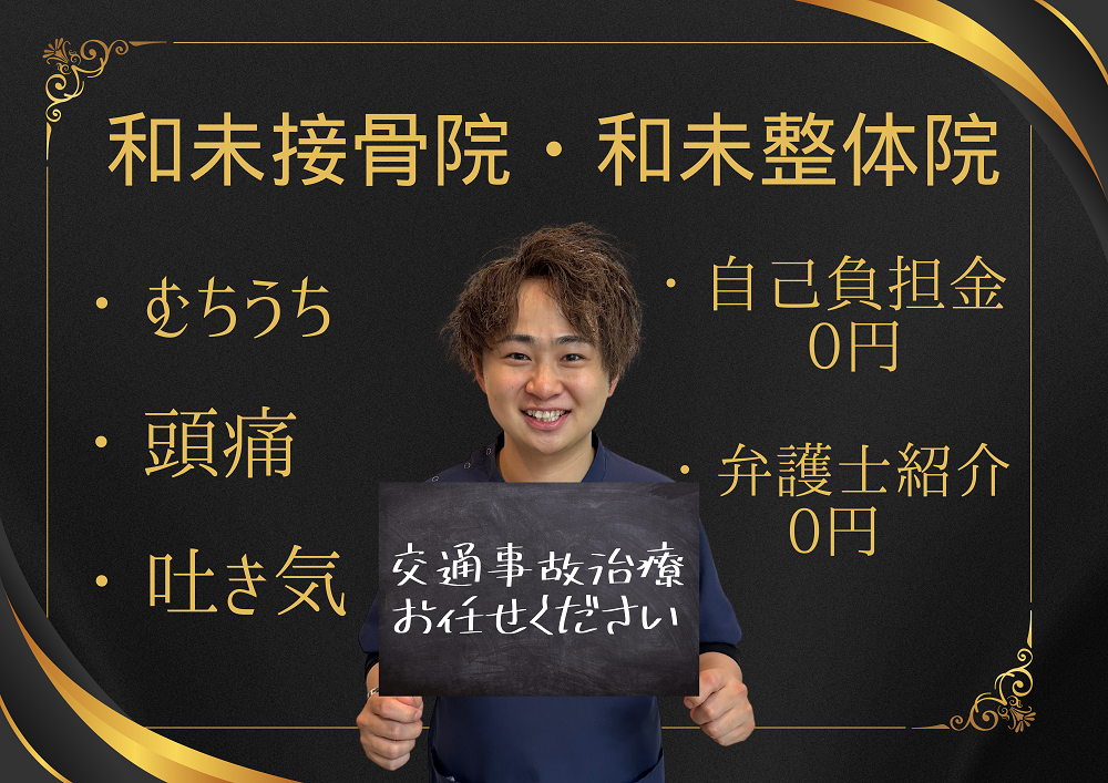 和未接骨院・和未整体院では交通事故治療を行っております。